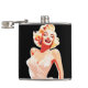 This stylish pocket flask with a colourful pop-art photo of a 1950s Hollywood star will make a big impression. Vibrant tones of red, yellow, and peach accentuate the woman's brilliant blonde hair and traditional white clothing, making a striking contrast against a sleek black background. The polished silver cap and trim offer a hint of contemporary refinement, and her appealing smile transmits vintage charm. This flask is a chic and useful accessory that blends vintage beauty with modern flair, making it ideal for lovers of classic glamour.