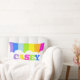 Bright rainbow stripes personalised short name white cloud nursery or kids bedroom pillow, part of the rainbow range. Customise with your own 5 letter name currently reads Casey. A perfect gift for colourful rainbow lovers. Original art and design by Sarah Trett www.sarahtrett.com exclusively for www.mylittleeden.com