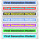 Colourful 7 Pack (Paste it anywhere) First Generation Student stickers For notebook, book, wallet, coffee cup, computer, phone, and graduation cap.