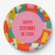 Colourful 80s Geometric Abstract Modern Pattern. Cheerful patchwork and dot design in bright colours with a joyful 1980s vibe and a retro modern aesthetic. Fun and full of bright colour. 20th-century contemporary modern art design. Happy Birthday text can be edited and personalised. By Kierkegaard Design Studio.