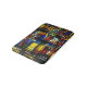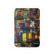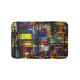 Custom bath mat with colourful abstract pattern. This modern art design is a digitally altered photo of a stained glass window and resembles a Mondrian composition