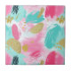 Colourful Abstract Brushstrokes - Mint & Pink (1) Ceramic Tile