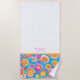 Abstract Art Circles in bright pink, blue, orange, yellow colours on white background, yellow trim with custom INITIALS in pink. Easy to personalise text, text colour. Great for ANY Pool Party, Beach House, Vacation mode, Bath decor. Colourful, Modern, Fun. Unisex. Mix and match entire Abstract Art Collection by TMCdesigns.