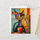 Colourful Abstract Cubist Cat & Coffee Postcard