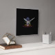 This wall clock is a stunning piece of art that will enhance any room in your home. The wall clock features a colourful abstract design in the centre, with lines and curves in a rainbow of colours. The design is set against a sleek black background, creating a striking contrast. The wall clock has silver clock hands and white numbers, making it easy to read the time. The wall clock is square in shape with rounded corners, giving it a modern and elegant look. The wall clock is made of a glossy material that reflects light and adds shine. The wall clock is also functional, as it keeps accurate time and has a silent movement. This wall clock is perfect for adding a touch of colour and style to your living room, bedroom, office, or any other space.