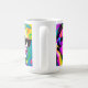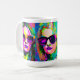 Creative unique art coffee mug. Colourful digital art abstract women in sunglasses. Colours used are pink, blue, purple, red, yellow and lime green.