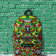 This all-over printed backpack is a true standout, boasting a vibrant and intricate pattern of geometric shapes and figures. The symmetrical design, featuring shades of green, red, white and black, is reminiscent of a kaleidoscope, turning everyday scenes into complex, mesmerising patterns. The central figure, subtly resembling a face, adds a touch of mystery and intrigue. But what truly sets this backpack apart is its customisable feature - the text printed in bold green letters at the bottom. This personal touch makes the backpack uniquely yours, reflecting your identity and style.