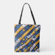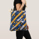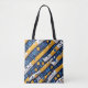Colourful abstract background with various geometric shapes and patterns in shades of blue, yellow, and white tote bag
