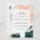 This colourful abstract let's celebrate invitation is perfect for your unique modern boho party. Hand-painted with textured brush marks of dark emerald green, peach, and mustard, all overlayed with a minimalist transparent square, it's sure to give your occasion a simple yet rustic bohemian feel.