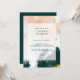 This colourful abstract lingerie shower invitation is perfect for your unique modern boho shower. Hand-painted with textured brush marks of dark emerald green, peach, and mustard, all overlayed with a minimalist transparent square, it's sure to give your occasion a simple yet rustic bohemian feel.