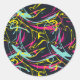 Colourful Abstract Memphis Lines Pattern Classic Round Sticker