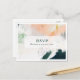 This colourful abstract menu choice RSVP card is perfect for your unique modern boho wedding. Hand-painted with textured brush marks of dark emerald green, peach, and mustard, all overlayed with a minimalist transparent square, it's sure to give your occasion a simple yet rustic bohemian feel.