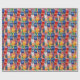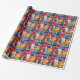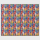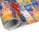 Splatter painted squares and rectangles in bright blue, red, orange, and yellow make a cute and fun all-occasion wrapping paper for kids or grownups.