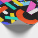Colourful abstract pattern with word love inside,eyes,tears,colour blocks. Pattern illustration with bright colour-blocking shapes. Trendy colourful pop art geometric pattern with bold shapes on black.