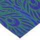 Bright colourful table runner features a bold maximalist abstract peacock feather design, boasting impressive bright blue and green plumage fanned out for display. The artistic design is a layered graphic composition that provides depth and perspective to the peacock feathers, with swirls of highlights and shadows in a complimentary light turquoise.