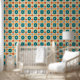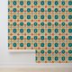 Colourful Abstract Retro Geometric Pattern Wallpaper features an abstract retro pattern in orange and teal. Perfect for home decor, lounge room, bedroom, kitchen, bathroom, wall accents and treatments, office decor and party decor. Created by Evco Studio www.zazzle.com/store/evcostudio