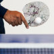 Colourful Abstract Splatter Painting, Ping Pong Paddle. Digital Art. Muted tones of Maroon, Hunter Green, Teal and Tan, in a splattered paint brush style, across a white background. Design is nice for professional use, celebrations, parties, and fun home decor. Design is fully customisable; make them your own.