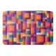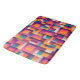 A bath mat with a colourful abstract background. Bold and exciting colours - pink, blue, orange and more.