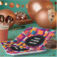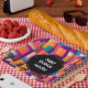 Paper plates with a colourful abstract background. Bold and exciting colours - pink, blue, orange and more.