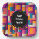 Colourful Abstract Squares and Shapes Birthday Paper Plate