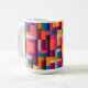 A mug with a colourful abstract background. Bold and exciting colours - pink, blue, orange and more.