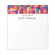 A notepad with a colourful abstract background. Bold and exciting colours - pink, blue, orange and more.