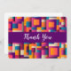 Flat thank You card with a colourful abstract background. Bold and exciting colours - pink, blue, orange and more.