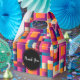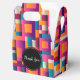 Tiny favour box with a colourful abstract background. Bold and exciting colours - pink, blue, orange and more.