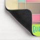 Personalise with a name on a light yellow green backdrop. The top portion of the mousepad is an abstract illustration with large and small squares and rectangles with intersecting lines. This creative design has contrasting pastels and brights in the colours of cream, rose pink, lime green, light brown and bright blue.