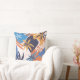 Abstract Summer palm tree pattern, throw pillow. Bright colourful shades of blue, orange and pink.