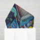 A colourful illustration of a cat in bright colours and floral patterns. Great for gift wrapping or decoupage and craft projects.