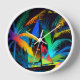 Colourful Abstract Tropical Sailboat Palm Trees Clock