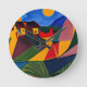 Colourful abstract village art round clock