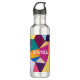 This water bottle features an abstract bold and colourful design of geometric shapes. Customise your design by easily adding a name, featured in white font.