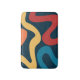 Abstract contemporary art design with colourful (blue, red, yellow, orange) waves decoration on navy blue background