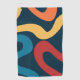 Abstract contemporary art design with colourful (blue, red, yellow, orange) waves decoration on navy blue background