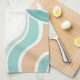 Colourful abstract wavy blue orange brown tea towel