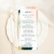 This colourful abstract wedding dinner menu is perfect for your unique modern boho wedding. Hand-painted with textured brush marks of dark emerald green, peach, and mustard, all overlayed with a minimalist transparent square, it's sure to give your occasion a simple yet rustic bohemian feel.