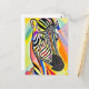 Colourful Abstract Zebra Portrait Painting Postcard