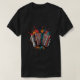 Vibrant t-shirt design featuring an accordion in bright colours surrounded by paint splatters.