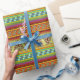 Colourful African Masks Stripe Kente Pattern Wrapping Paper