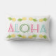 Say Aloha to summer with this fun tropical lumbar pillow featuring bold, colourful Aloha lettering in pink, aqua, and green, bordered by rows of cheerful yellow pineapples on a clean white background. The playful, retro-inspired typography and fruit motifs bring instant vacation vibes to any patio, porch swing, or outdoor lounge chair. A bright, welcoming accent for tropical and beach-themed outdoor spaces.