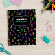 Back to school notebook personalised with name and subject, with a pattern of colourful letters, big and small.