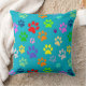 Colourful and Cute Pet Paw Prints Pattern Cushion
