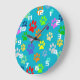 Colourful and Cute Pet Paws Pattern Large Clock