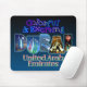 Beautiful Dubai sights and events in letters: Burj Al Arab, Dubai Airshow, Victory Team, Clock Tower and fireworks during National Day and Dubai Shopping Festival.