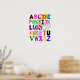 Here's a fun poster for the classroom or a little kid's room. It features the uppercase letters of the alphabet, each rendered in a unique font and colour scheme. A great gift for a pre-schooler or a teacher.