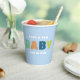 Celebrate the baby to be at a shower with colourful and modern colour palette orange, green, mint, navy and sky blue. These sweet personalised paper cups add a special touch to the shower decor with pops of colour and fun, casual fonts.