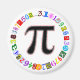 A colourful and fun depiction of pi. In this design the digits of pi, in many colours and each rendered in its own unique font, form a circle around the Greek letter. Great for math lovers and math geeks. Great for Pi Day.