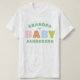 Celebrate the baby to be at a shower with colourful and fun "grandpa of" shirt with colours of pink, orange, green, mint, and sky blue. A fun surprise announcement gift for the grandfather to be or for the proud gramps to wear at a baby shower (so everyone knows who the patriarch is) the mint green text is easily personalised with his chosen moniker and the last name of the little babe on the way.